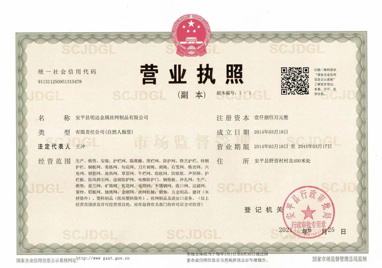 安平縣明遠金屬絲網(wǎng)制品有限公司 - 座落于絲網(wǎng)產(chǎn)業(yè)基地河北安平,二十年絲網(wǎng)制作經(jīng)驗,是一家從拔絲、焊接、打砂、折彎、鍍鋅、噴塑、浸塑、為成品,生產(chǎn)研發(fā)安裝為一體的交通工程護欄網(wǎng)、光伏景區(qū)圍欄網(wǎng)專業(yè)型企業(yè)。明遠公司擁有先進的生產(chǎn)設(shè)備,全自動浸塑、噴塑、鍍鋅生產(chǎn)線,電腦焊網(wǎng)機組,聯(lián)合壓力機,數(shù)控折彎機,槍尖沖孔機等多臺輔助設(shè)備,具有大批量生產(chǎn)能力。